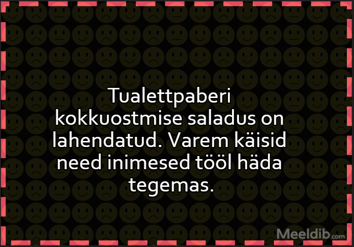 Meem Tualettpaberi kokkuostmise saladus on lahendatud Published Why So Serious 29.03.2020 Aforism, tsitaat, mõttetera