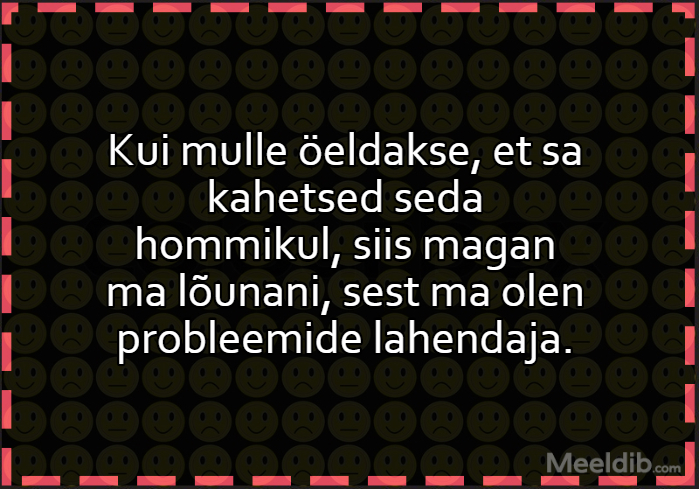 Meem Kui mulle öeldakse, et sa kahetsed seda hommikul Published Why So Serious 24.03.2020 Aforism, tsitaat, mõttetera