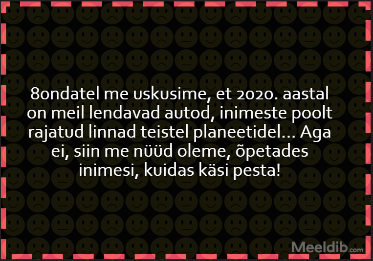 Meem 80ndatel me uskusime, et 2020. aastal on meil lendavad autod… Published Why So Serious 11.03.2020 Aforism, tsitaat, mõttetera