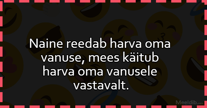 Meem Naine reedab harva oma vanuse, mees käitub harva oma vanusele vastavalt Published Why So Serious 13.07.2020 Aforism, tsitaat, mõttetera