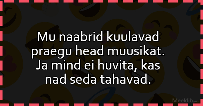 Meem Mu naabrid kuulavad praegu head muusikat Published Jupats 03.05.2020 Aforism, tsitaat, mõttetera