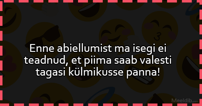 Meem Enne abiellumist ma isegi ei teadnud, et piima saab valesti tagasi külmikusse panna! Published Matu 03.04.2020 Aforism, tsitaat, mõttetera