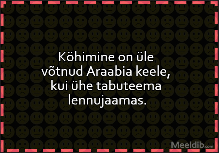 Meem Köhimine on üle võtnud Araabia keele, kui ühe tabuteema lennujaamas Published Matu 25.03.2020 Aforism, tsitaat, mõttetera Muu melu