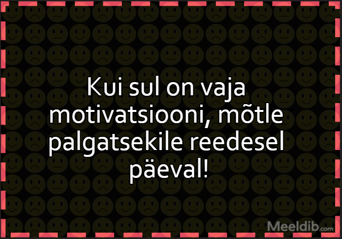 Meem Kui sul on vaja motivatsiooni, mõtle palgatsekile reedesel päeval! Published Matu 20.03.2020 Aforism, tsitaat, mõttetera