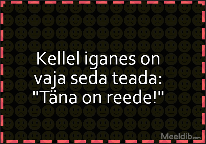 Meem Kellel iganes on vaja seda teada: “Täna on reede!” Published Matu 20.03.2020 Aforism, tsitaat, mõttetera