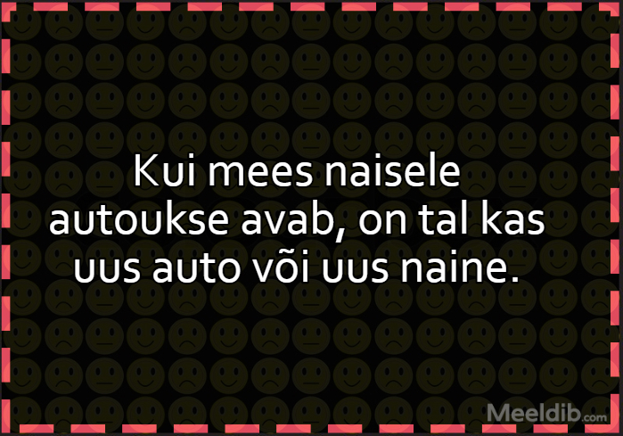 Meem Kui mees naisele autoukse avab, on tal kas uus auto või uus naine. Published Matu 20.03.2020 Aforism, tsitaat, mõttetera