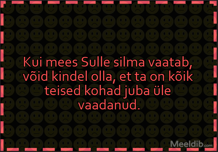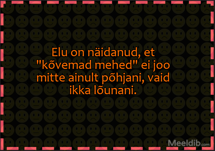 Meem Elu on näidanud, et “kõvemad mehed” ei joo mitte ainult põhjani, vaid ikka lõunani Published Matu 19.03.2020 Aforism, tsitaat, mõttetera