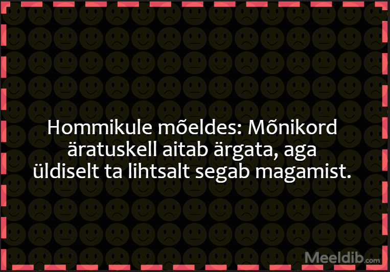 Meem Hommikule mõeldes: Mõnikord äratuskell aitab ärgata, aga üldiselt ta lihtsalt segab magamist. Published Matu 14.03.2020 Aforism, tsitaat, mõttetera