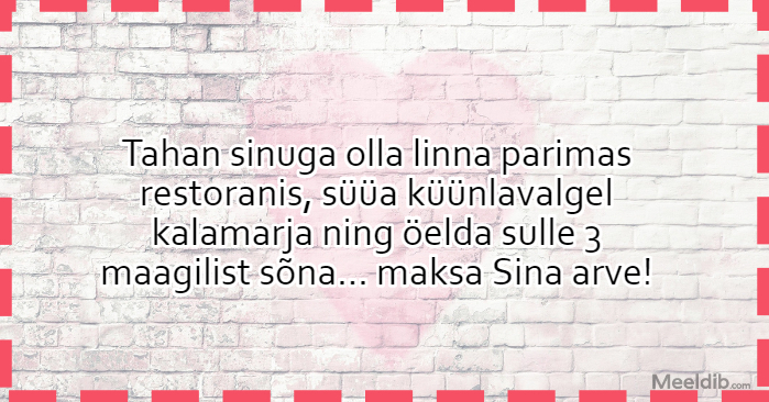 Meem Tahan sinuga olla linna parimas restoranis Published Matu 11.04.2020 Aforism, tsitaat, mõttetera