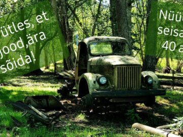 Kohtuvad 2 sõpra, üks üleni sinikaid täis, komberdab vaevu.“Soh, mis sinuga juhtus???”“Ähh, läksin eile kõrtsust koju läbi pargi, kui äkki üks masin sõitis pampriga põlvedesse....