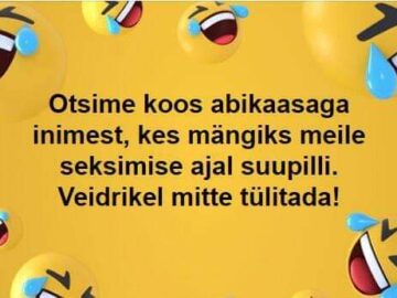 Mees tuleb töölt, naine võtab ta siidises hommikumantlis meelalt uksel vastu: “Kallis, mida sa praegu kõige rohkem teha tahaksid?” “Juua,” vastab mees mornilt. Naine valab...