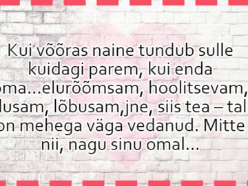 “Kus su abikaasa on?” uurib üks sõbranna teiselt. “Kodus. Koos oma neljajalgse sõbraga!” vastab teine. “Ma ei teadnudki, et olete koera võtnud!?” “See pole koer, vaid...