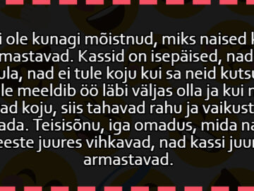 Naine teatab koju tulnud mehele: “Tead, kallis, kus mul täna vedas! All trepikojas vedelesid täiesti uued kingad! Proovisin jalga – täpselt minu number!” “Jaa, vedas...