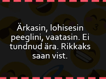 “Tead, tänu naisele jätsin ma maha joomise, suitsetamise ja kaardimängu.” “Õnnitlen! Ma loodan, et su naine on nüüd täiesti õnnelik?” “Mis sa nüüd! Iga kord,...