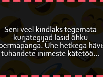 Talumees istub kõrtsis ja joob pits pitsi järel viina. Siseneb naaber: “Tere, Jaan! Kuule, miks nii sünge?” “Ma võin sulle rääkida, Peep, aga sa nagunii...