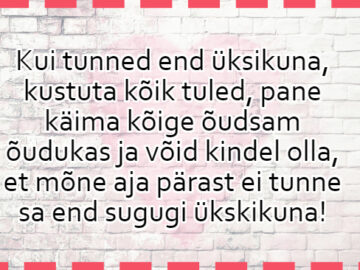 Istuvad eite-taati köögis, kui järsku virutab eit taadile täiest jõust vastu vahtimist. “Mille eest???” küsib taat hämmeldunult. “Et sa mind kogu elu kehvasti keppinud oled!”...