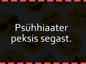 3311813 AnekdootMinu nimi on Jaan„Tere, minu nimi on Jaan ja ma varastasin eile Tallinna loomaaaiast panda.” „Meil muide on siin Anonüümsete Alkohoolikute üritus,” segab grupijuht vahele. „Ja kas te...