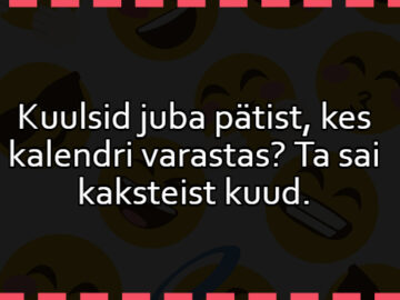 “Ega sa sellest pudelist ei joonud???” “Jõin küll, mis siis?” “See on ju juuksevedelik!” “Aa, no sellepärast siis nii ruttu pähe hakkaski….”