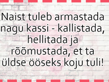 “Tõin sulle lilli,” ütleb mees. “Jah? Aga… mispärast?” küsib naine. M: “Noh… Ma arvasin, et sulle meeldiks lilli saada.” N: “Kas on midagi lahti?” M:...