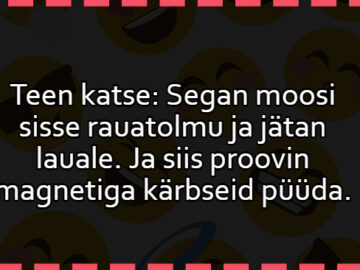 Kaks meest sõidavad rongis, üks kotiga ja teine ilma, ja ühel krõbiseb midagi kotis. Teine küsib: “Mis see sul seal krõbistab?”“See on krõbistaja,” vastab teine mees.“Mis...