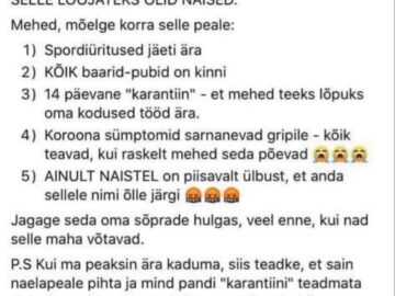 Mees küsib naiselt: “Kas sa oled kunagi tahtnud olla mees?” “Ei. Aga sina?”
