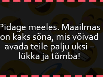Pühapäeva hommik. “Kas sa täna kalale tuled? “Ei.” “Miks?” “Lugesin horoskoopi – kaladel pidi täna hullult hästi minema!”