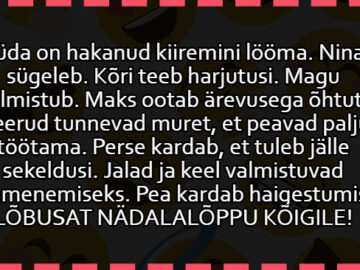 Mees tuleb koju alles hilja öösel.“Kus sa olid?!” nõuab naine vihaselt.“Vasja juures!”“Kohe kontrollime!” teatab naine ja helistab Vasjale.“Kuule, Vasja, kas minu Stjopa oli sinu juures?”...
