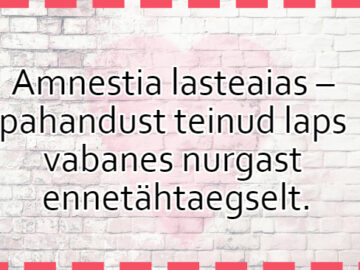 Sõbrannad omavahel: “Kas Liina ei kahetse, et pidi abielludes oma näitlejakarjäärist loobuma?” “Oh ei, ta on siiani oma elementi jäänud!” “Kuidas nii???” “Noh, üks draama...