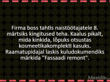 Naine, naastes tööreisilt, korraldas järgmisel päeval abikaasale skandaali. -Miks sa meie koju võõraid eitesid tirisid??? -Aga ma pole kedagi toonud…. -Sa ikka mäletad, kus ma...