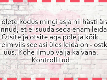 1087812 Aforism, tsitaat, mõtteteraTe olete kodus mingi asja nii hästi ära pannud, et ei suuda seda enam leida