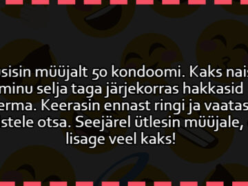 Lifti astuvad suur tugev naisterahvas ja pisike kõhn mees. “Noh, mehehakatis,” lausub naine. “Hakkad vägistama?” “Ei-ei, mis te nüüd, ei… ei!” “Hakkad! Kuhu sa mul...
