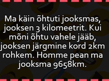 Mees ja naine tülitsevad. Lõpuks mees käratab: “Mulle aitab, nüüd ma karistan sind seksuaalselt!” “Okei!! Kas eest või tagant?” küsib naine naeratades. “Nii eest kui...