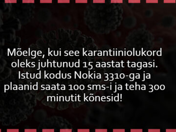613681237 Aforism, tsitaat, mõtteteraMõelge, kui see karantiiniolukord oleks juhtunud 15 aastat tagasi.