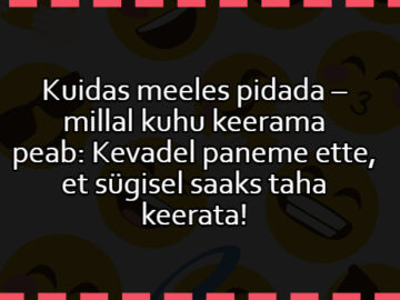 Mutt müüb turul rinnahoidjaid ja karjub:“Rinnahoidjad nr. 2 ja 3!”“Kas teil nr. 1 on?” küsib möödaminev neiu.“Vistrikutele pannakse briljantrohelist!” vastab müüja nipsakalt.“Aga kas nr. 4...