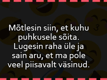 Mees tuleb öösel koju ja naine küsib vihaselt: “Kus sa nii kaua olid?! Kell on juba neli!!!” Mees vastab:”Kui ma oleksin kodus olnud, oleks kell...