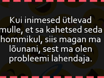 “Hallo, ema, mida küll teha? Mu mees petab mind järjepidevalt!”“Kuidas sa nii kindel oled?”“Eile ma leidsin ta taskust stringid, täna juba rinnahoidja….”“Tütreke, ole kannatlik, ära...
