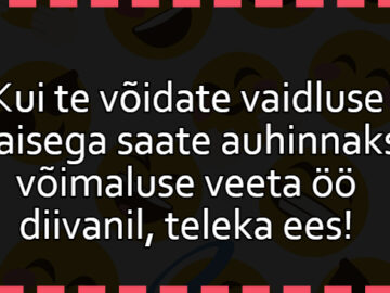 Mees naisele:– Kuule, mängiks õige mõnda rollimängu?!– Kuidas?– Noh, näiteks sina oled Punamütsike ja mina olen kuri hunt…– Oh, äge! Teeme ära! – No mine...